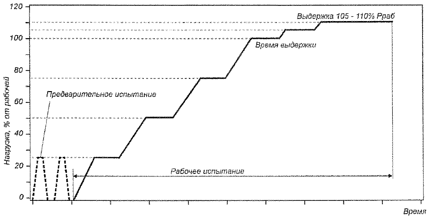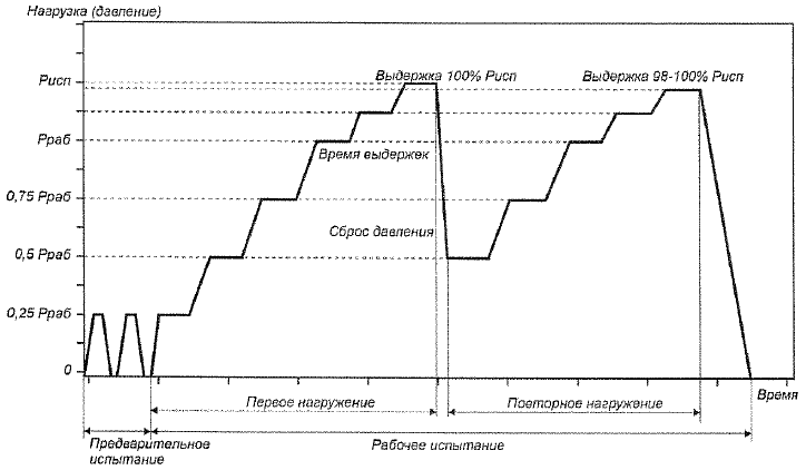 - до проведения нагружения объекта, находящегося в эксплуатации, рекомендуется получить информацию о параметрах нагружения объекта, в частности, максимальном действующем (рабочем или испытательном) давлении или нагрузке в течение последнего года.