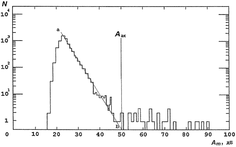 События высокой амплитуды - регистрация N1 лоцированных событий акустической эмиссии с локационной амплитудой, выше предварительно заданной "высокой амплитуды" A1;