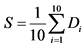 9.11. Для каждого источника акустической эмиссии вычисляют показатель опасности источника S как среднюю величину параметра D десяти событий акустической эмиссии, зарегистрированных в источнике и имеющих максимальные значения параметра D: