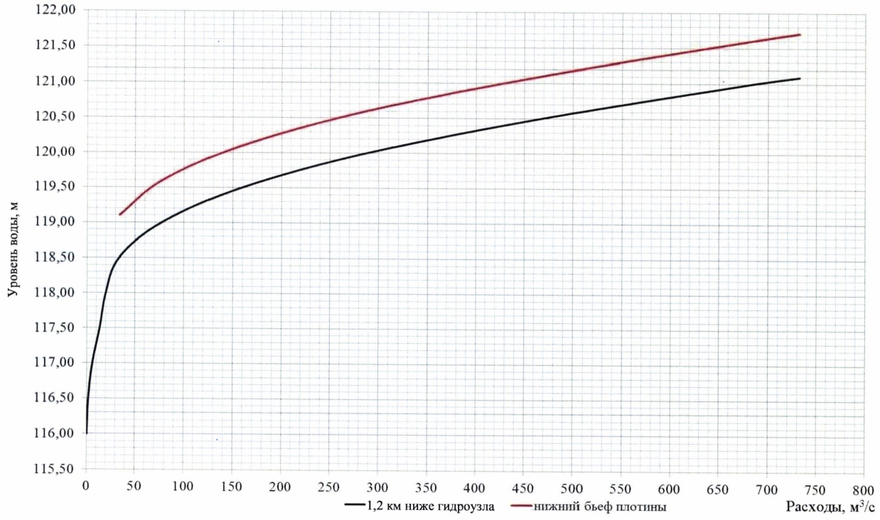 Кривая подпора от р. Лесной Тамбов при 3% обеспеченности