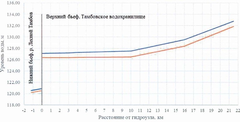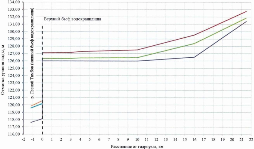 Кривая подпора от р. Лесной Тамбов при 0,5% обеспеченности
