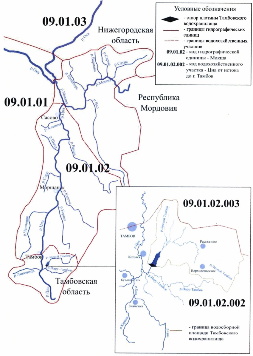 4. Гидроузел и образованное им Тамбовское водохранилище расположены в Рассказовском муниципальном округе Тамбовской области на р. Лесной Тамбов в 3 км юго-восточнее г. Котовска. Тамбовское водохранилище расположено в пойме и первой надпойменной террасе р. Лесной Тамбов.