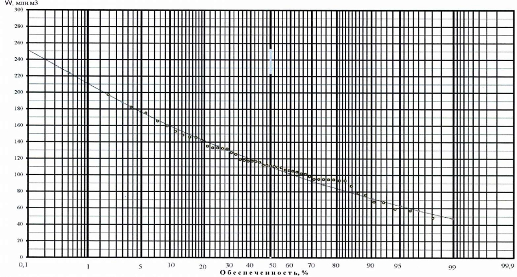 Обеспеченность объемов годового стока р. Лесной Тамбов в створе гидроузла Тамбовского водохранилища: