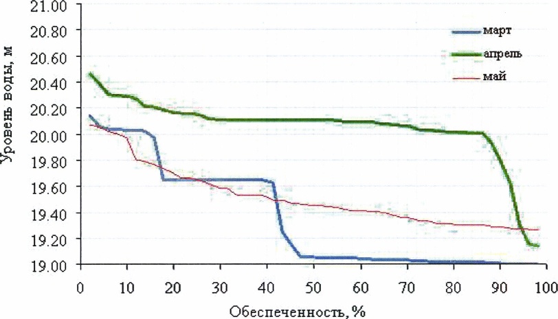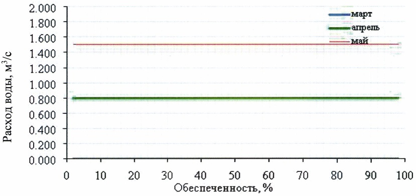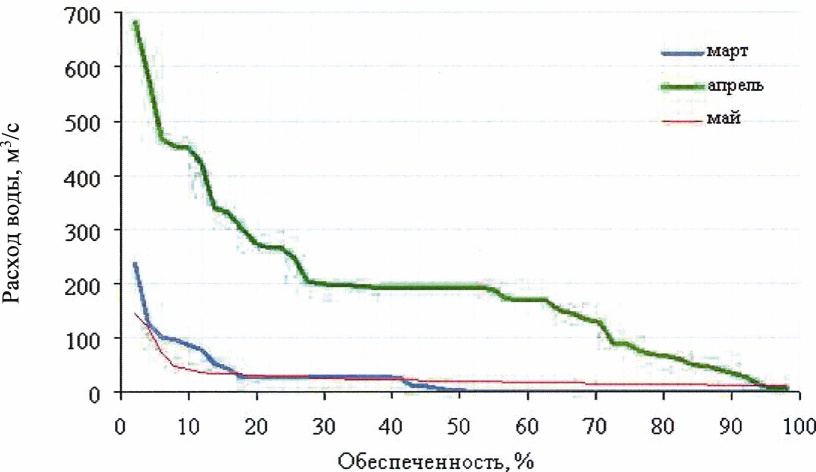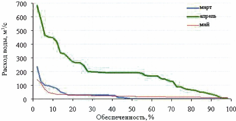 Внутригодовое распределение естественного стока р. Большой Иргиз по месяцам за характерные по водности водохозяйственные годы: