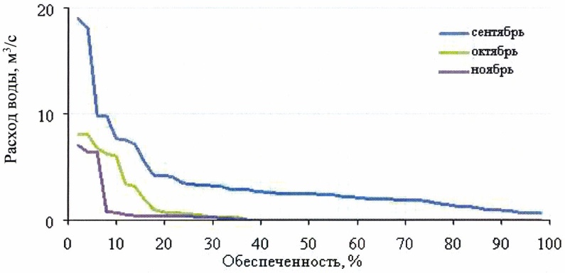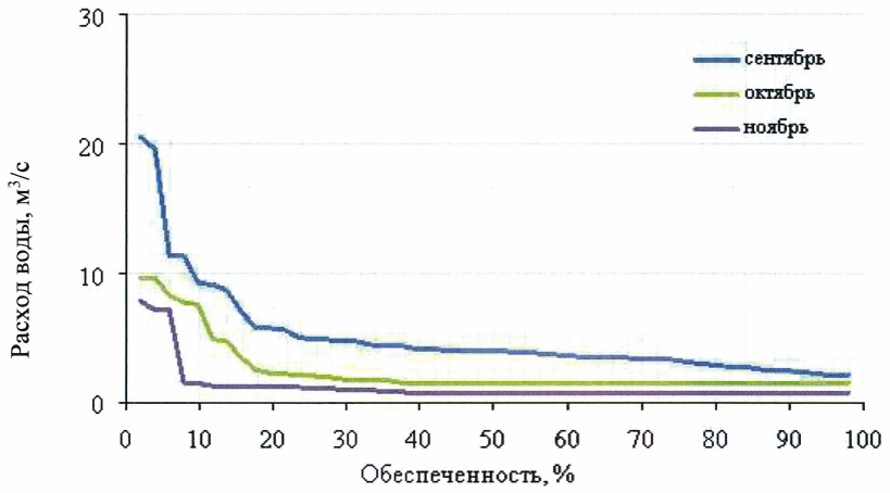 Расчетная кривая обеспеченности среднегодовых расходов воды р. Большой Иргиз в створе гидроузла приведена в приложении N 2 к настоящим Правилам.