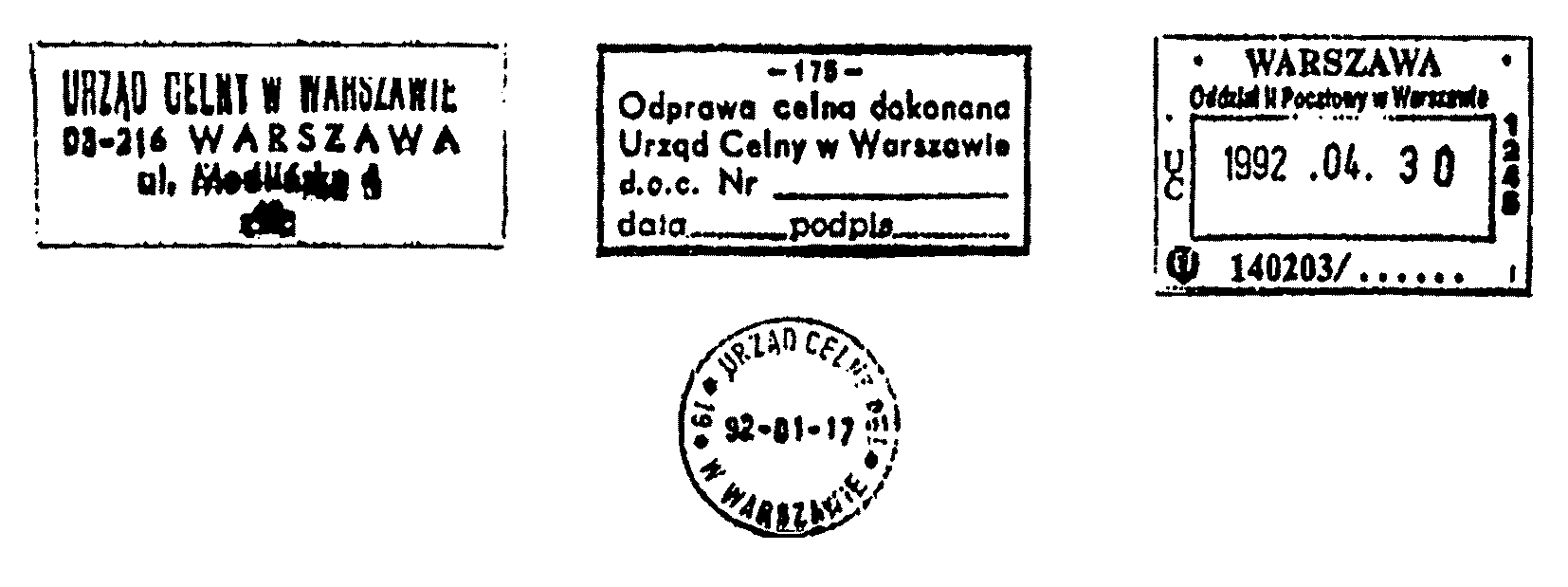 2.5. Образцы таможенных обеспечений и штампов таможенных органов Республики Польша приведены в Приложении 2 к настоящему указанию.