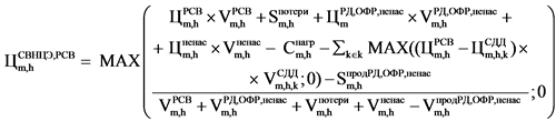 - объем электрической энергии, купленный гарантирующим поставщиком по договорам, указанным в подпункте 16 пункта 4 Правил оптового рынка электрической энергии и мощности, с использованием которых осуществляется торговля электрической энергией по регулируемым ценам (тарифам) на отдельных территориях, ранее относившихся к неценовым зонам, а также на территориях, объемы потребления электрической энергии в которых обеспечиваются в том числе перетоками электрической энергии между входящей в состав Дальневосточного федерального округа отдельной территорией, ранее относившейся к неценовым зонам, и остальной частью второй ценовой зоны оптового рынка, в целях обеспечения электрической энергией и мощностью потребителей, не относящихся к населению и (или) приравненным к нему категориям потребителей, в час (h) расчетного периода (m), МВт·ч;";